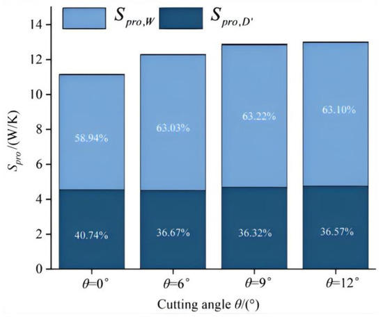 Comparison of entropy production of various types at different oblique cutting angles under the design working conditions.