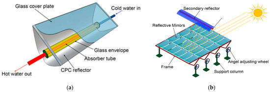 (a) Compound Parabolic Collector and (b) Fresnel solar collector.