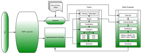 NVIDIA TSPP is an automated tool that makes it easy to compare and experiment with any combination of time-series datasets, predictive models, and their configurations and hyperparameters. The TSPP provides the ability to identify optimal hyperparameter search spaces, and to run accelerated model training using distributed multi-GPU training with automatically selected precision [12].