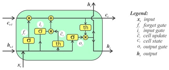 As part of the work, the LSTM network layers were used. These layers operate based on two state vectors: short-term h and long-term c. The network also uses forget gates. This design enables the cell to determine which inputs are important and how long to retain them in the long-term memory vector. The previous state of the cell is then saved in short-term memory. The forget gate determines the lifespan of the information contained in the long-term vector. Information kept in long-term memory is removed when it ceases to be relevant Figure 2. This is ideal for sectors related to text, speech, or audio recording analysis, as well as time-series analysis.