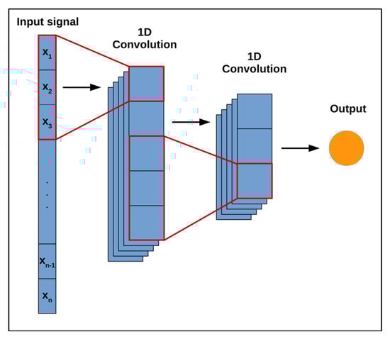 Convolutional neural networks (CNNs) are a type of artificial neural network that learns through mathematical convolution operations. Like traditional neural networks, CNNs consist of layers: an input layer, hidden layers, and an output layer. The main difference is that, in addition to the activation function, the hidden layers of CNNs use the convolution of the layer and filter input data. CNNs are widely used in image processing and analysis. One-dimensional convolutional networks (1D CNNs) use two-dimensional data as input Figure 4. They are used in time-series analysis, among other applications.