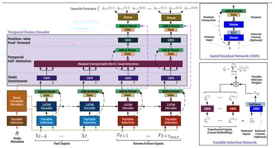 - Lim, B.; Arik, S.Ö.; Loeff, N.; Pfister, T. Temporal Fusion Transformers for Interpretable Multi-horizon Time Series Forecasting. arXiv 2021, arXiv:1912.09363. [Google Scholar] [CrossRef]