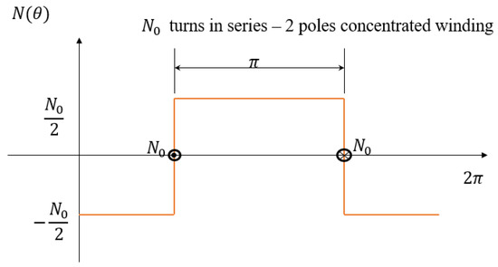 Once the winding function is defined, it is possible to find the flux along the D axis, from which the expression of the magnetizing inductance can be written. In the proposed approach, a square-wave winding function was considered, as shown in Figure 3.