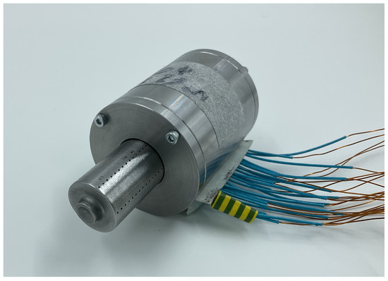A prototype of the motor (see Figure 18 and Figure 19) was built to validate some of the results obtained analytically and through 2D FEA simulations. The stator was constructed using stacked lamination rings housed in a tubular outer shell, and the coil terminals were left unconnected to allow a flexible interconnection for testing and parameter measurement. Initially, the phase winding resistance was measured, yielding a value of 2.69 Ω, which matched the value obtained through analytical calculations.