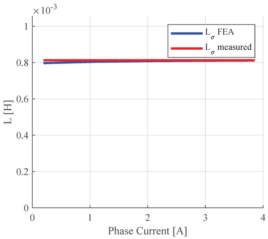 Phase inductance obtained via 2D FEA and measured on the prototype.