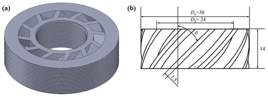 (a) A 3D diagram of the swirler; (b) the geometric dimension of the swirler.