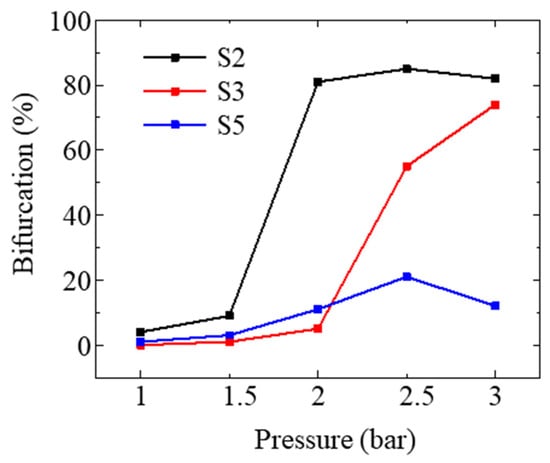 The proportion of bifurcated structure in 100 instantaneous images under different pressures.