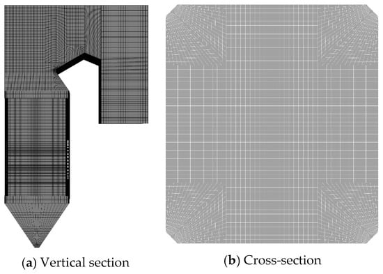 Ansys ICEM CFD 2022 R1 is applied to mesh the boiler’s three-dimensional model. The mesh of the burner nozzle region is encrypted to ensure accurate simulation. The processed model grid structure is illustrated in Figure 2.