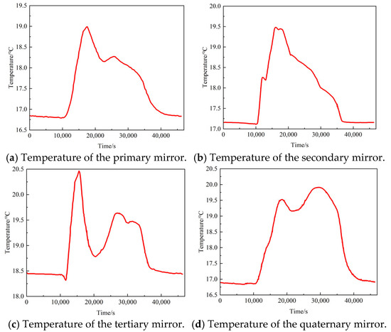 Temperature variation curve of each mirror over time under inter-satellite pointing attitude.