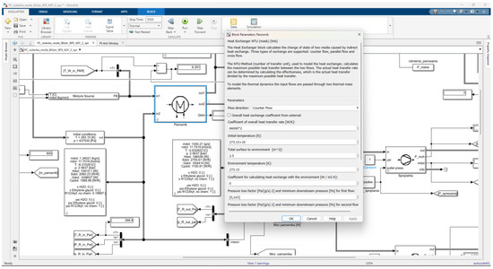 Figure 12. Configuration of exchanger parameters in the MATLAB and Simulink Thermolib package.