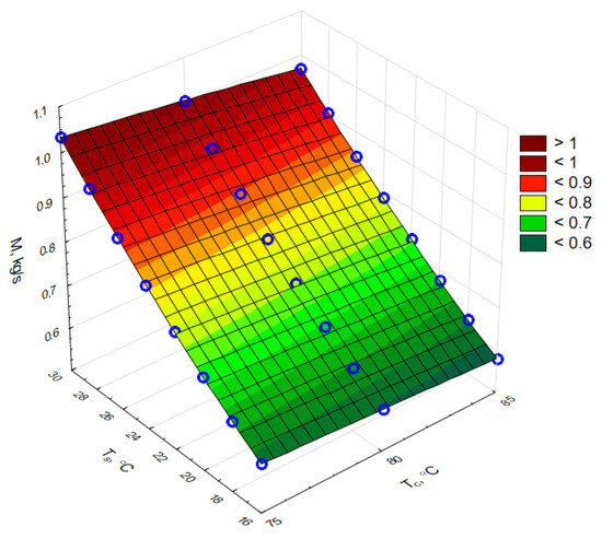 Figure 16. Mass flow (M) of the refrigerant in a high-temperature HP for the assumed design Ts and Tc.
