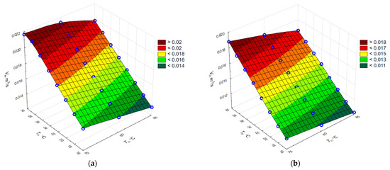 In the case of the evaporator and condenser of the high-temperature HP, the medium used was a 40% ethylene glycol solution (temperature of solidification −35 °C). The results of the calculations carried out for the high-temperature HP (Tc: 75 ÷ 80 °C, Ts: 16 ÷ 30 °C) are shown in Figure 17.