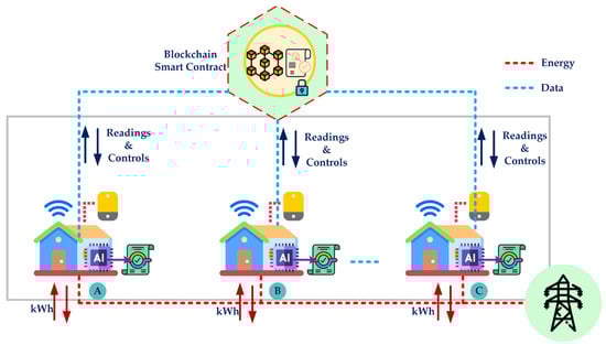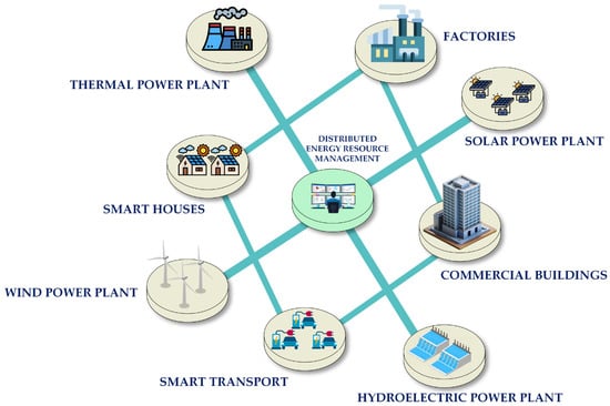 Physical decentralization involves the geographical distribution of power generation by utilizing small—and medium-sized energy resources, including solar panels, wind turbines, and battery storage systems, which are directly linked to low- or medium-voltage distribution grids. This method minimizes transmission losses, enhances reliability, and facilitates the incorporation of renewable energy sources nearer to the consumption point. Decentralizing energy production leads to a decrease in reliance on large, centralized power plants, while also providing communities with the chance to embrace cleaner and more resilient energy solutions. Nonetheless, it presents difficulties for the conventional grid infrastructure, including the management of bidirectional power flows, ensuring grid stability in the face of renewable intermittency, and the need to enhance distribution networks to support various distributed energy resource technologies [49,50].