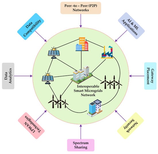 Figure 13 illustrates the infrastructure development required for integrating emerging DERs within a microgrid. It highlights key components such as advanced communication networks, control systems, energy storage, and renewable generation units, emphasizing their roles in enabling efficient, flexible, and reliable microgrid operation. Several significant problems in decentralized energy systems emerge from the integration of DERs and their effects on grid operations and energy markets. The challenges encompass addressing the unpredictability of renewable energy generation, as the variable characteristics of solar and wind power can result in erratic energy outputs, necessitating advanced forecasting and management tools to ensure grid stability. A significant concern is the necessity to reduce high and variable energy prices for consumers, leading to the creation of economical energy storage solutions, adaptive pricing strategies, and effective market systems to stabilize costs and maintain affordability [55]. Furthermore, overseeing real-time discrepancies between energy supply and demand is a multifaceted challenge that requires strong control algorithms, demand response initiatives, and the implementation of virtual power plants (VPPs) or distributed energy resource management systems (DERMS) to effectively align energy generation with consumption. The issue of preventing grid instability and ensuring high power quality is increasingly critical as renewable energy sources become more prevalent. This necessitates significant investments in modernizing the grid, enhancing power electronics, and providing ancillary services such as frequency and voltage regulation [56]. Furthermore, addressing the challenges of distribution grid congestion and facilitating grid enhancements, all while securing profitability for emerging participants in energy markets, presents a distinct economic aspect. Innovative approaches like peer-to-peer energy trading, the aggregation of distributed energy resources for market engagement, and the establishment of local energy communities have the potential to generate new revenue opportunities while reducing pressure on the grid. To fully realize the potential of decentralized energy systems, it is crucial to address these challenges in a comprehensive manner, ensuring a reliable, resilient, and affordable energy future [57].