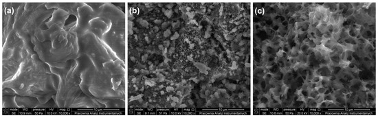The structure of the initial HRoCG, as well as that of the CHRoCG and AHRoCG obtained as a result of its modification, is shown through SEM photography in Figure 6.