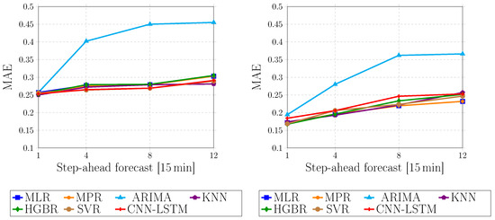 In this work, the focus was on the following models that balance accuracy with efficiency: MLR, MPR, ARIMA, KNN, SVR, HGBR, and a hybrid CNN–LSTM model.