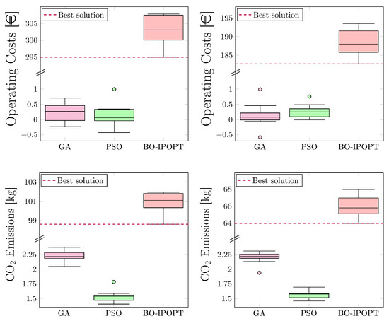 By alternating between global exploration and local refinement at each iteration of the algorithm, the BO–IPOPT can efficiently solve high-dimensional optimization problems with numerous constraints, overcoming the challenges typically faced by traditional optimization methods in such settings. It should be mentioned that the hybrid method is parameter-free, since its parameters have been optimally set based on test cases considered in the previous work, and learning hyperparameters (common in BO approaches) during the optimization process has, thus, been avoided in our method. For further details about BO–IPOPT, the reader is referred to [18,19].
