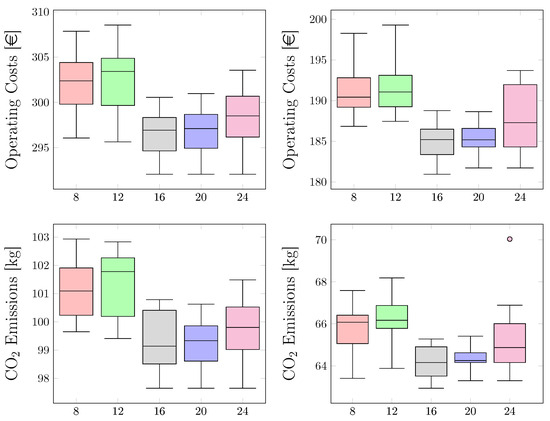 The objective is formulated as a weighted sum of the operating costs and the associated CO2 emissions. The operating costs result from electricity expenses due to grid power imports and are partially offset by revenues from excess PV electricity fed into the grid. CO2 emissions are proportional to the grid electricity consumption, based on a fixed emission factor that reflects the carbon intensity of certified eco-electricity, including emissions associated with its provision and infrastructure. The complete objective function is given as