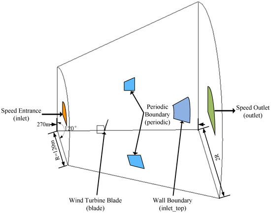 The analysis of aerodynamic performance under wind load is crucial for the design of wind turbine blades. In addition to the accuracy of model construction, selecting an appropriate performance analysis method is essential. Common methods for analyzing the aerodynamic performance of wind turbine blades include field tests, wind tunnel tests, numerical simulations and theoretical calculations. Field tests and wind tunnel tests require high-precision equipment and specialized technology support, which can lead to relatively high costs. The theoretical calculation method is usually applicable to some specific working-condition parameters. For some complex flow phenomena and aerodynamic performance parameters, a large amount of computational resources and time may be required, which is inefficient. In contrast, the numerical simulation method based on a computer platform offers the advantages of low cost and high computational efficiency. Meanwhile, this method can simulate more complex flow phenomena and aerodynamic performance parameters, provides more accurate prediction results and has a wide range of applications [22]. Therefore, this paper adopts the numerical simulation method for performance analysis.