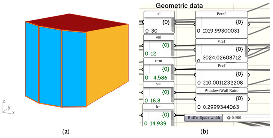 The results of each step were automatically saved in an Excel spreadsheet [58]. In the fourth step, the relationships found between independent and dependent variables in this research were analyzed. Based on this analysis, the parametric qualitative thermal model created in the second step was configured to define a resultant parametric quantitative thermal model of buildings with buffer spaces. Thus, in the fifth step of the method’s algorithm, the resultant parametric quantitative thermal model was created using a number of various correlation, linear regression and nonlinear estimation procedures.