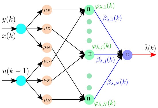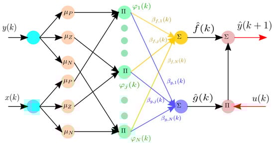 An adaptive network, referred to as MiFRENm, is employed to estimate the error dynamics described in Equation (14), based on the network architecture illustrated in Figure 2. Accordingly, the equivalent model is formulated as