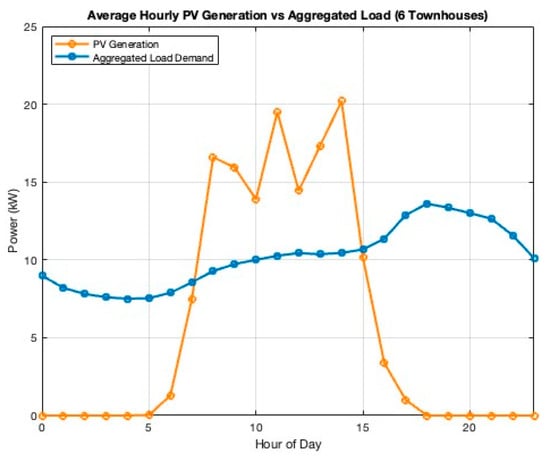 The aggregated load demand of the six townhouses is represented as