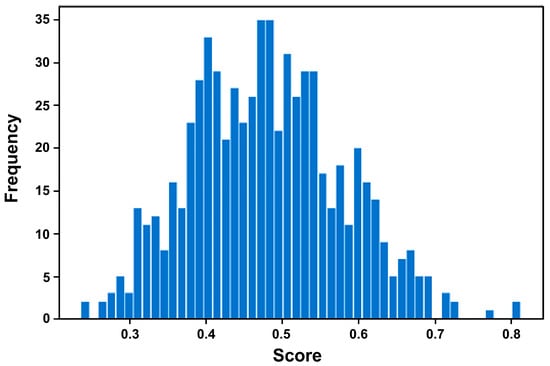 - Normalize the data. Let denote the sample index and denote the indicator index. Let represent the original value of the -th indicator for the -th sample. Denote the minimum and maximum values of all samples for the -th indicator as and , respectively. Each is linearly mapped to the interval [0, 1], resulting in the normalized value .For a positive indicator, the normalization is computed as follows:For a negative indicator, the normalization is computed as follows: