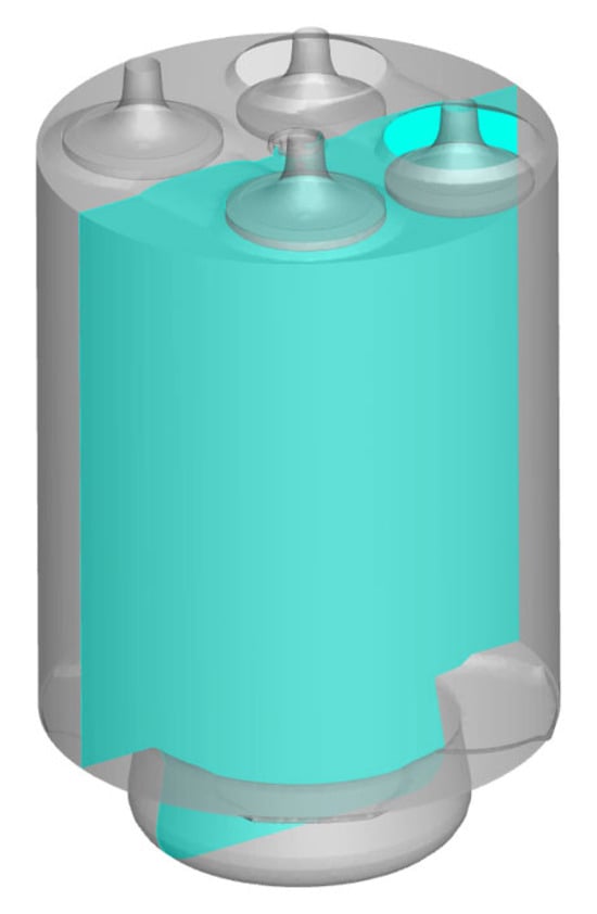 To analyze and optimize CTCV, this study established a six-cylinder engine computational fluid dynamics (CFD) simulation model with complete intake and exhaust manifolds using CONVERGE 4.0 software, a next-generation CFD simulation platform developed by Convergent Science. The 4.0 version employed in this study features automated mesh generation technology. This advanced capability enables real-time dynamic meshing during engine piston and valve movements, ensuring computational accuracy while significantly improving the workflow efficiency. Figure 1 presents the geometric model of the overall structure of the NG engine. For better presentation of microscopic field data, the cross-sectional plane positioned axially across the spark plug was employed. Figure 2 provides a schematic diagram illustrating the specific location of the cross-sectional plane.