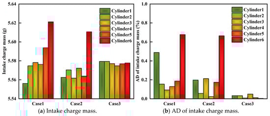 Comparison of intake charge mass and AD of intake charge mass among cylinders.