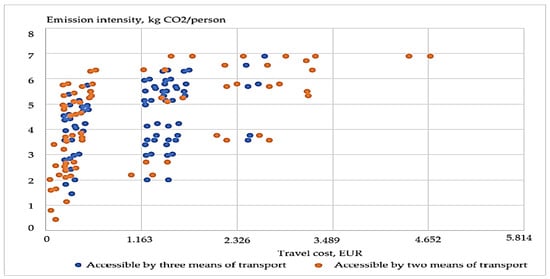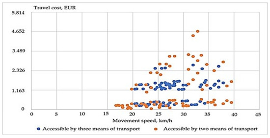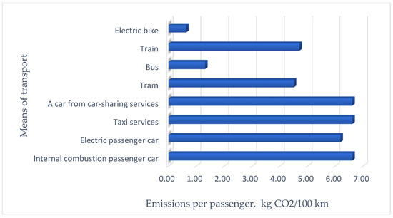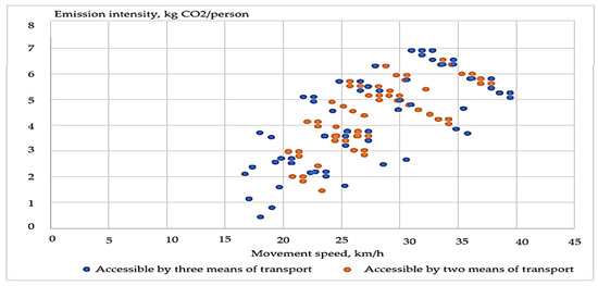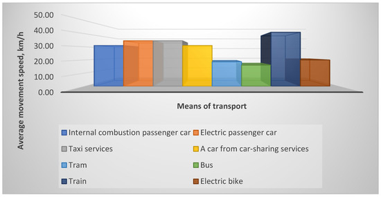 - The implementation of the fastest urban mobility process is associated with the highest level of CO2 emissions. The exception is the use of bicycles and city trains in the transport process. This allows for maintaining high-cost efficiency with reasonable travel speed and appropriate comfort.