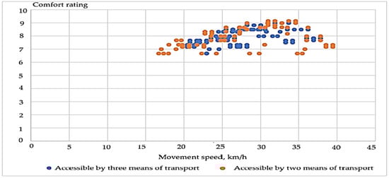 - in Figure 9, the lower speed limit is 35 km/h, and the comfort of commuting is not less than 8.33,