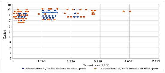- in Figure 11, the upper cost limit is EUR 1628 per year, and the comfort of commuting is a score not lower than 8.33,