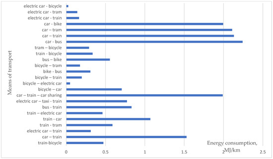 - The assessment of energy consumption of individual means of transport may play an important role in the optimization processes of existing transport systems in cities. This is conducted to demonstrate the need to transform individual transport towards electromobility and to increase the role of transport processes based on the combination of two or three means of transport in the process of meeting transport needs in urban areas.