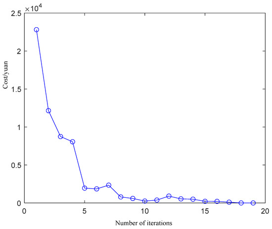 Table 3 presents an analysis of the carbon reduction benefits of the multi-microgrid alliance before and after the implementation of the electric carbon-sharing strategy. Specifically, the carbon emissions of Microgrid ① decrease from 86,159 kg to 76,523 kg, the carbon emissions of Microgrid ② decrease from 44,328 kg to 39,995 kg, and the carbon emissions of Microgrid ③ decrease from 86,371 kg to 70,125 kg. Overall, the total carbon emissions of the alliance realize a significant decrease from 217,178 kg to 186,643 kg, which is a decrease of 14.06%. This data fully proves that the Nash game-theory-based electric carbon-sharing strategy of the multi-microgrid alliance has significant environmental benefits in reducing carbon emissions.