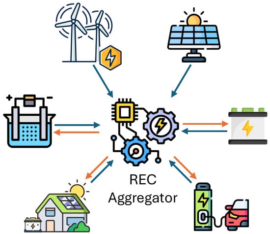RECs form a distinct subset of ECs, focusing on RES sharing and maximum exploitation, where the aggregation of heterogeneous types of generating units and loads can create interesting new operational opportunities for the electricity systems [,].