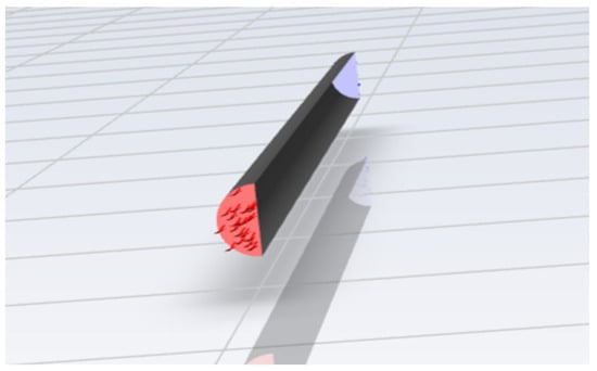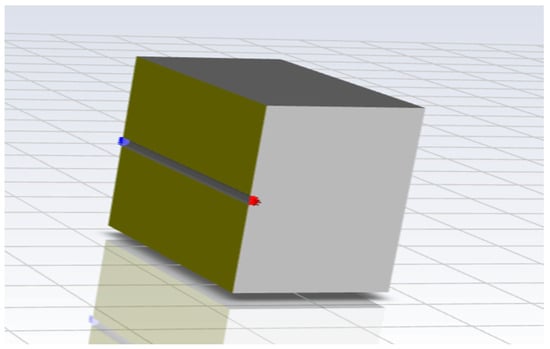The air duct in expanded polystyrene (EPS) has a semi-cylindrical geometry, with a wall thickness of 20 mm and a base surface area of 0.0157 m2. The pipe is embedded within a defined computational domain shaped as a parallelepiped, with dimensions of 5.0 m in length, 2.0 m in width, and 4.0 m in depth, as schematically depicted in Figure 3.The inlet and outlet sections are indicated in red and blue respectively, while the symmetry section of the object is indicated in yellow.