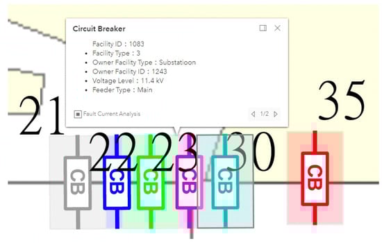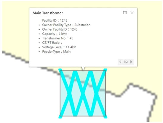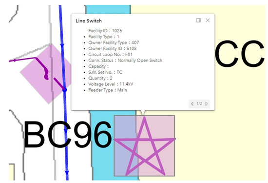 The Supervisor Control and Data Acquisition (SCADA) system plays a critical monitoring role and is the core of the automation monitoring system. It provides real-time monitoring of various substation equipment, including bus voltage, line current, line active/reactive power flow, switch status, remote control switches, and the operational status of essential equipment such as substation transformers and circuit breakers [3]. This information assists the on-duty operator in understanding the system status and enables them to take immediate control or emergency response actions when necessary. The current SCADA system interface is relatively basic, making it difficult for dispatch personnel to intuitively understand the geographical location of feeders and equipment from the system display device [4]. Since power equipment and feeders can extend over tens or even hundreds of meters, the power system operator needs to consider geographical locations to grasp the power information detected by SCADA accurately. Geographic Information Systems (GISs) provide the optimal solution for managing the geographical information of transmission and distribution equipment. The GIS’s ability to combine spatial coordinates with equipment data is highly beneficial for operating and controlling distribution systems [5]. Integrating GISs with SCADA in distribution systems, various equipment, and customer-related geographic information can be combined for design and planning purposes to enhance design efficiency significantly [6,7,8,9,10]. The application of GIS technology in the electric power industry has proven valuable for asset management, outage management, and spatial analysis of electrical infrastructure. Rezaee et al. [11] emphasized the role of GISs in distribution networks to enhance utilities’ spatial awareness and operational efficiency. Similarly, Datta and Mohanty [12] demonstrated how integrating enterprise GISs into India’s smart grid framework improved system visualization and responsiveness. These studies affirm the relevance of GIS-based solutions in modernizing distribution network management.