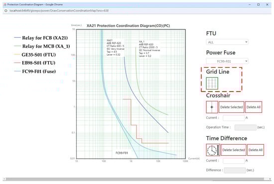 DNGIS-PC drawing of the TCC curve with the “Grid Line” auxiliary function.