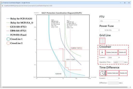 DNGIS-PC integrates real-time SCADA monitoring data, spatial feeder topology, and device setting information into a centralized interface for protection analysis. It supports various functions, including load flow analysis, fault current estimation, and the visualization of TCC curves. Moreover, the platform includes interactive tools—such as the Grid Line, Crosshair, and Time Difference functions—that assist engineers in intuitively analyzing relay behavior and evaluating coordination performance.