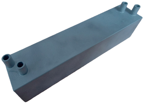 The heat exchanger, with an external shape resembling a cuboid and dimensions of 40 × 40 × 200 mm (Figure 2), was the most crucial element of the research installation.