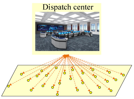 Traditional ED employs mostly centralized economic dispatch (CED). All dispatch decisions and control instructions within CED are made and given from a centralized dispatch center (as shown in Figure 1).