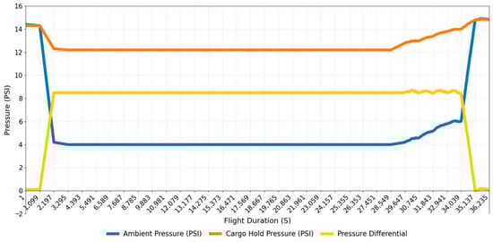 The tests were conducted from November to December 2024 using a Boeing 747-400F cargo aircraft (The Boeing Company, Seattle, DC, USA), covering a total distance of 36,680 km. Multiple environmental data acquisition devices were installed in the cargo hold to record pressure variations from sea level to 15,000 m altitude, with measurements taken at 500 m intervals.
