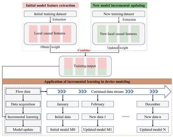 Normalized operation period: A large amount of actual operation data of the equipment is automatically collected, and the input of the latest operation data of the equipment can be continuously obtained. Compared to retraining the entire model, the incremental learning method can effectively use new data while retaining the characteristics of the existing model, thus saving time and computing resources. By continuously updating the model with real-time data, changes and trends in the operating characteristics of the equipment were promptly captured, thus ensuring that the model remained consistent with the actual conditions. The incremental learning process is represented in Figure 5.