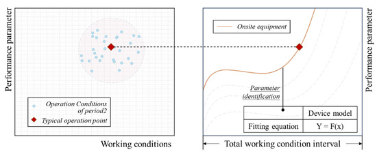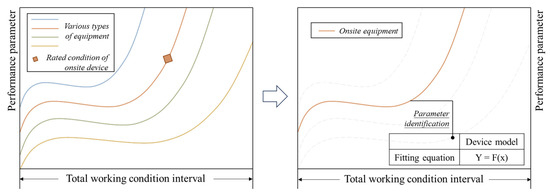 Although this stage has expanded data acquisition based on the rated parameters, the data volume still cannot support data-driven modeling. Therefore, appropriate parameter models were selected based on the obtained data, and the equipment performance model was acquired through parameter identification tailored to the specific characteristics of the equipment, as represented in Figure 3.