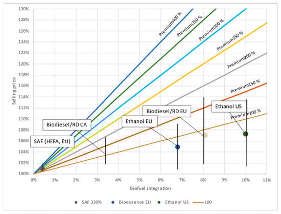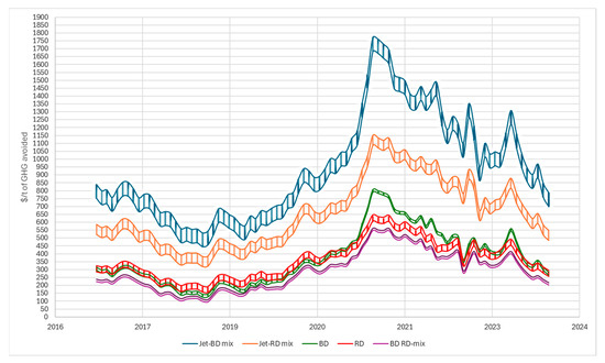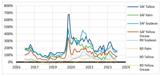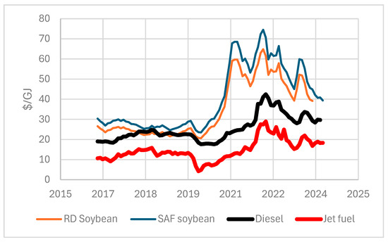 3.1.1. The HEFA-tJ Fuel Market Is Attractive Despite Prohibitive Production Costs