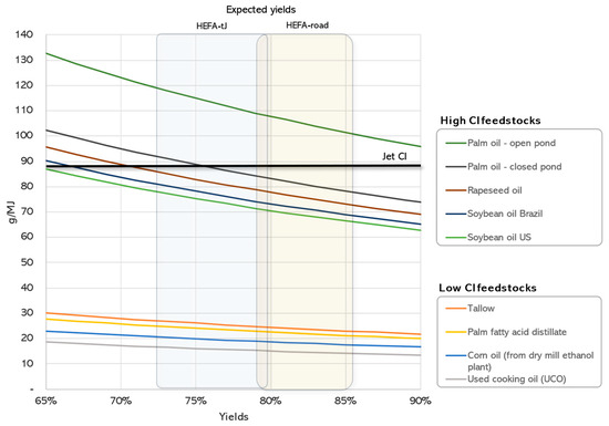 3.1.2. HEFA-Road Has Higher Yield and Selectivity than HEFA-tJ