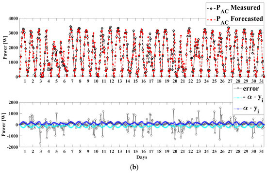 - Error evaluation. At each time step, the error between the measured and forecasted PAC is calculated as:The error is then compared against the tolerance band. If it falls outside this range, it is flagged as a high-cost imbalance, positive if , or negative if .