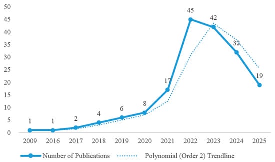 Annual publication trends, 2009–May 2025 (Source: Authors’ own work).
