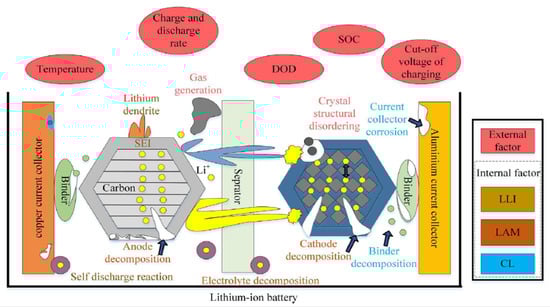 - Edge, J.S.; O’Kane, S.; Prosser, R.; Kirkaldy, N.D.; Patel, A.N.; Hales, A.; Ghosh, A.; Ai, W.; Chen, J.; Yang, J.; et al. Lithium ion battery degradation: What you need to know. Phys. Chem. Chem. Phys. 2021, 23, 8200–8221. [Google Scholar] [CrossRef]