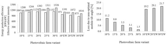 - Božiková, M.; Bilčík, M.; Madola, V.; Szabóová, T.; Kubík, Ľ.; Lendelová, J.; Cviklovič, V. The Effect of Azimuth and Tilt Angle Changes on the Energy Balance of Photovoltaic System Installed in the Southern Slovakia Region. Appl. Sci. 2021, 11, 8998. [Google Scholar] [CrossRef]